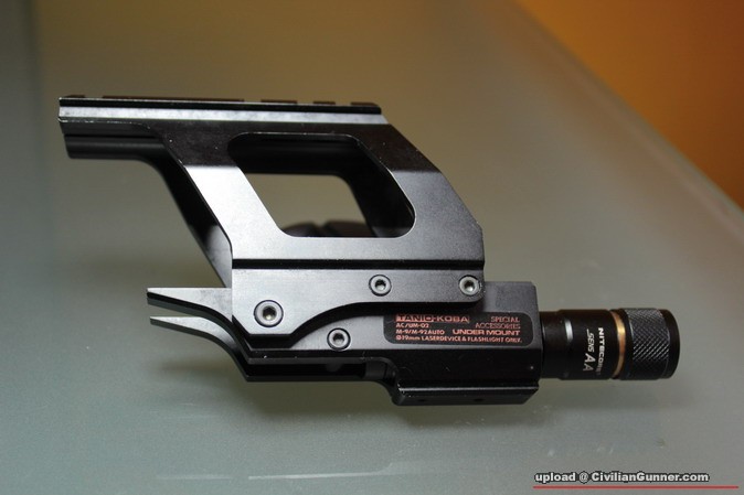 我很久前已喜歡Tanio Koba的產品,他們的出品都很特別.最近在日本Bid了這套Tanio Koba Mount set for M93R,無修直上,再配上NITECORE的電筒(此Mount Set原設計for laser用,所以只可幼身電筒).此mount set已絕版很久,在日本綱站找到,實在幸運