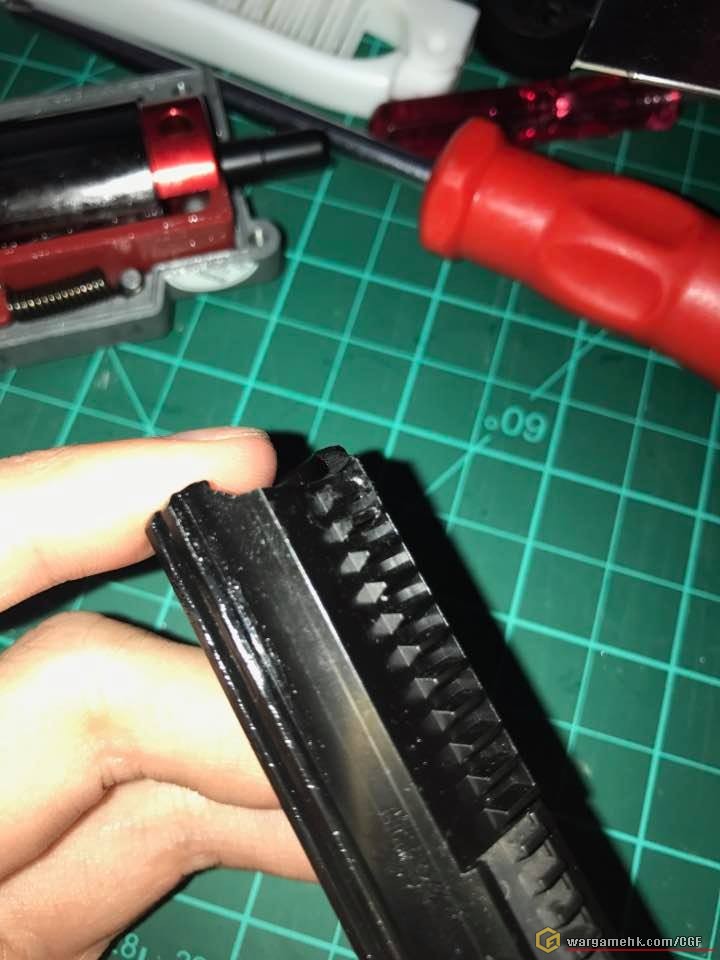 尾2, 3 齒都已經「刨」走左個頂,估計piston 回到第12~13 齒左右,