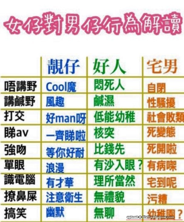 原帖由 reniless 於 14-4-2016 15:02 發表 不少男網民慨嘆港女閱人態度無變,始終係靚仔大晒,舉例靚仔講鹹濕笑話會被視為「風趣」,但出自宅男口中則當作「性騷擾」。有網民坦言,現今社會只看表面,人如果生得醜樣已經是原罪;