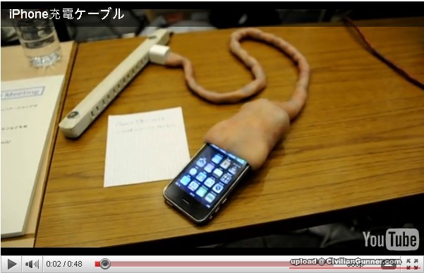 但影片中這款,於日本「Make:Ogaki Meeting 01」展出的iPhone充電器就絕對讓人無法忽視。這款由日本藝術家飯X未央所設計的「臍帶」充電器,在充電時不但會不斷地收縮,還會發出一種有如正在吸吮的特別聲音,原來這個產品的概念是「為iPhone賦予生命」,而網友們對它的評價相當兩極。