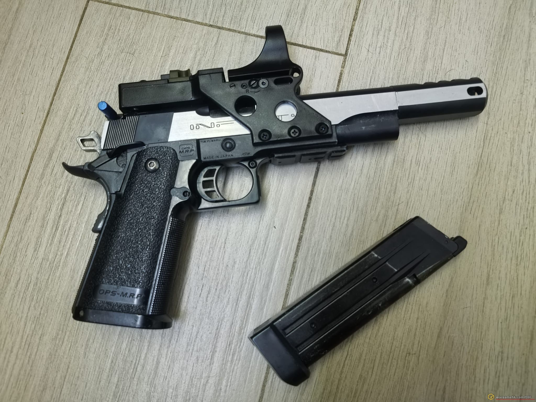 5.        GBB- Marui-HI CAP 5.1金屬滑架,光纖前後西, 連鏡橋及紅點鏡,一槍一匣,(適合打IPSC 及CQB)$980