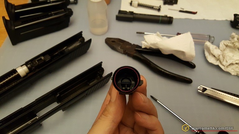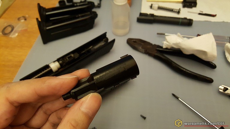 拆槍發現條小彈弓斷左...所以撞針比匣推左上去落唔返黎...攪左幾耐搵 ...
