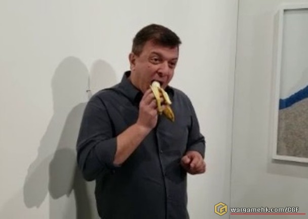 點都好過有人,把香蕉用膠紙貼在牆壁上.