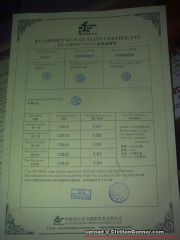 開左幾槍,D聲有D尖,問代理話係因為行4隻齒輪0既關係,用.25珠測出1.88J,有D驚,因為之前估計佢得1.6J左右,8米射擊6槍中晒杷心,5蚊左右大小誤差,相信係我自己手震影響,遠D 0既RESULT遲D先做到,枝野整體好好,而家中毒興奮中