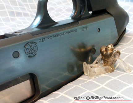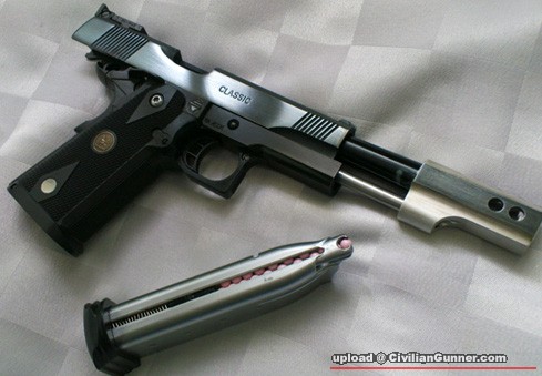 It's an old stuff... MGC p7m13 w/ metal slide. :-)