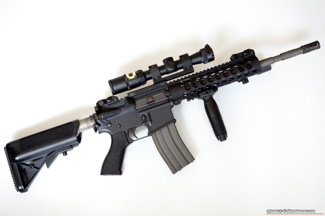 原帖由 jpg 於 3-7-2010 03:49 發表 照睇係m4 kit, 14.5 外管, troy trx 9" 骨, gp/tangpodown style motor grip.