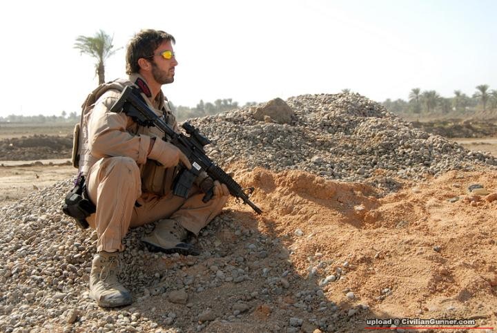 look at the handgun......
