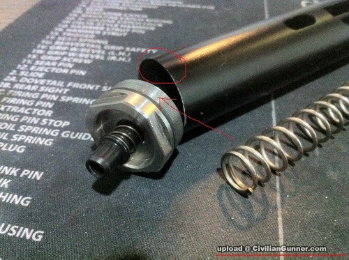 筒身物料剛性不夠,缸頭收緊後,筒身已微向外變型,故缸頭不能收得太緊