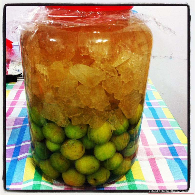 梅酒 : 通常人地會磅 , 但我大約計份量 ! 計容器每樣一半份量就得 ! 最少浸半年 ! 一年後飲用味道最好 !