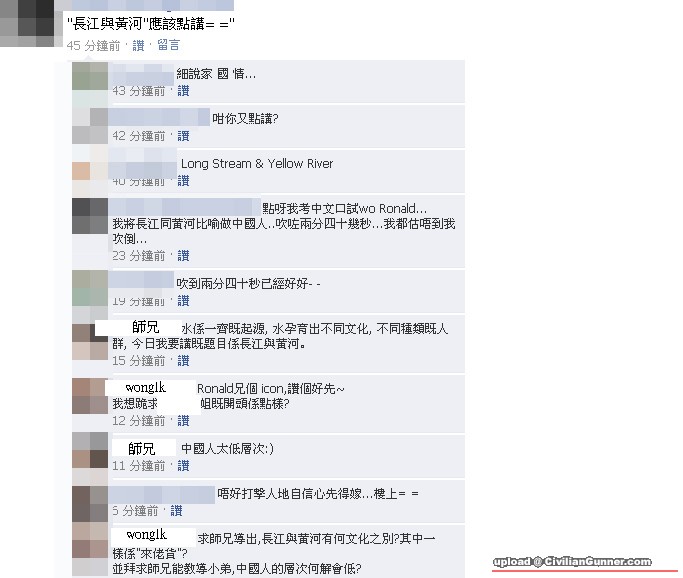 長江同黃河,的確會令人聯想起中國人,但我又唔見得可以有層次之分,難道講美國人會高嘗d?