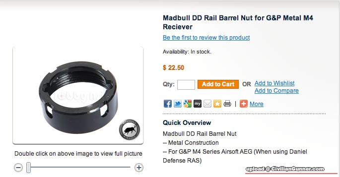 原帖由 RCman 於 4-3-2011 11:42 發表 Madbull Daniel Defense SOPMOD II RIS II Madbull Daniel Defense Lite Rail 兩款都是用同一個nut ring,骨尾用六粒screw lock的方法一樣。 不同是SOPMOD II RIS II骨下身是由四粒"一字"頭screw lock住,下骨可以 ...
