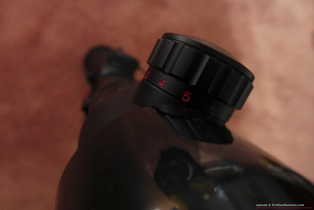個 scope mount 係 clamp on 的,唔使鑽o隆,一口鏍絲就上實了。個 Bushnell scope 係 4X-16X40 大倍數變焦鏡,入電後紅/綠光,各有五個光效,夜晚都用得。Zero 咗個 scope 之後,立即變咗 sniper rifle,而且可以繼續用個 iron sight,咁大個 scope 都完全冇阻住。