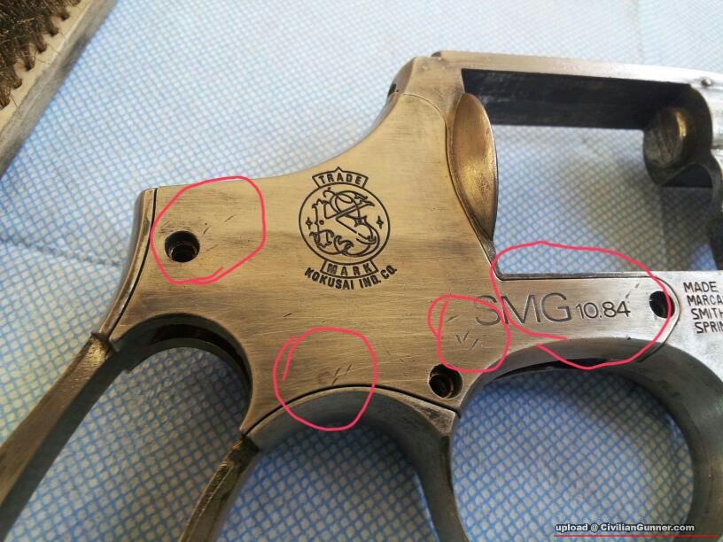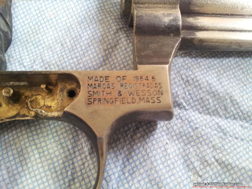 搞開左輪。。。係墳場揾到枝N年前友人棄掉比咗小弟做零件既“超級爛blue爛件爛殼甩皮甩骨)kokusai S&W M19 6"cap gun.....!