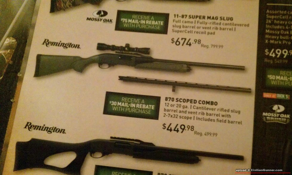 另一支 Remington 870,一支 smoothbore,加一支 slug barrel,再加個 2-7x32 scope,減完 rebate 同 gift card,唔使 US$400,決定星期日去買了。