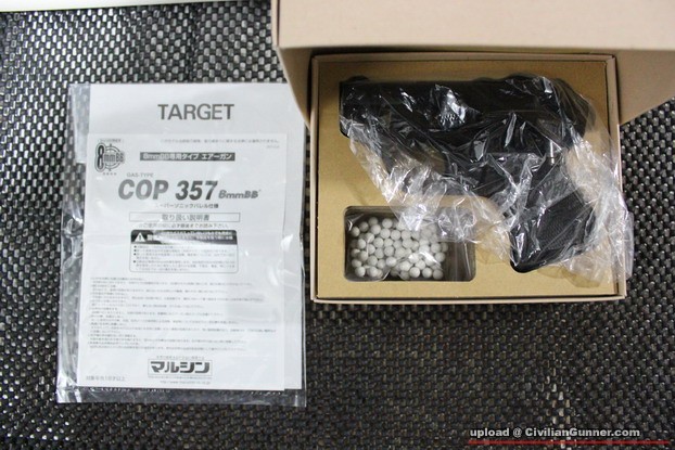 呢支COP 357係Marushin出品,購自"西京",售價& ) ),日版膠身打6mm,4粒子彈順時針(槍咀向目標計)咁每次射一粒.