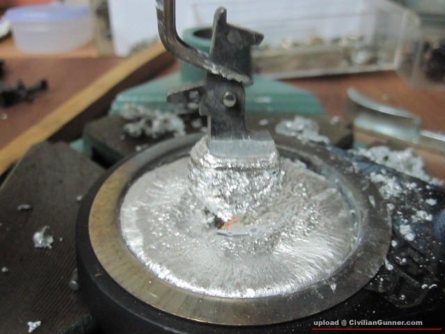 用辣雞座底兜做溶池,然後一層層咁加上去(要控制火路,減少錏鉛合金既沙窿)