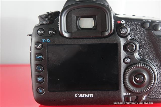EOS 5D Mark III配備大型明亮光學觀景器,提供約100% 覆蓋率及0.71倍放大率。新採用的智能觀景器,提供不同的對焦點顯示設定及格線顯示功能。機身的104萬點、3.2吋(3:2) Clear View II LCD,採用防反光結構及塗層,即使在陽光下拍攝仍能提供明亮鮮艷畫面。新增的影像比較顯示,在影像重播時可以將兩張影像並排顯示,讓攝影師輕易地即時比較影像。