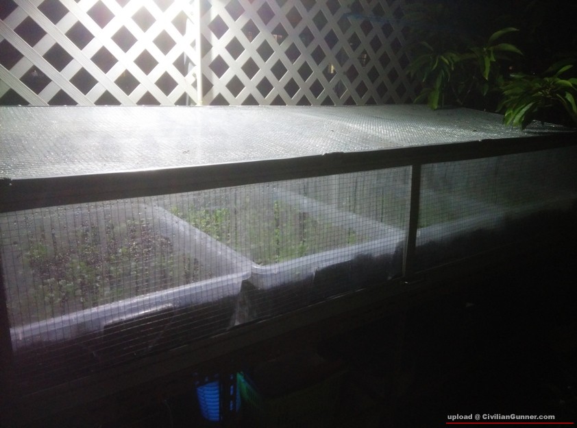 五金鋪鋁材,膠檯布鐵絲網,防水防蟲防鼠,等室内保持温度同濕度,形成内循環,咁就慳水了!植物係個人造熱帶環境下,就生得特別快,惟一問题係陽光不夠強,因為有附近環境同露水阻住。