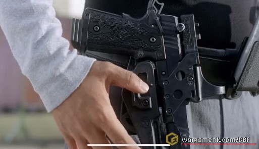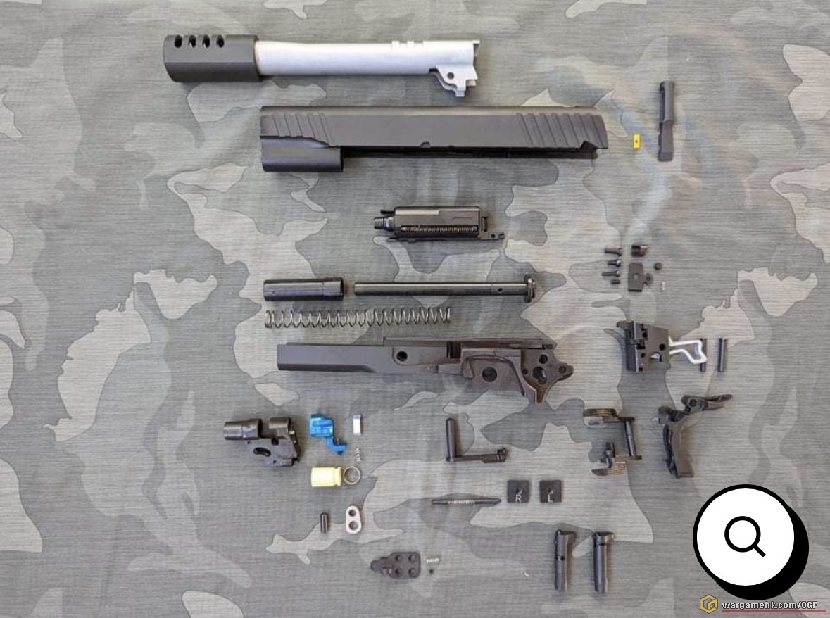 電影中道具槍,網上討論眾多不用多說,值得一提匣底是STI的珍品,型態獨特,底部有粒星,拍攝時僅配合WA道具氣槍使用。