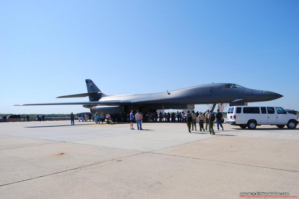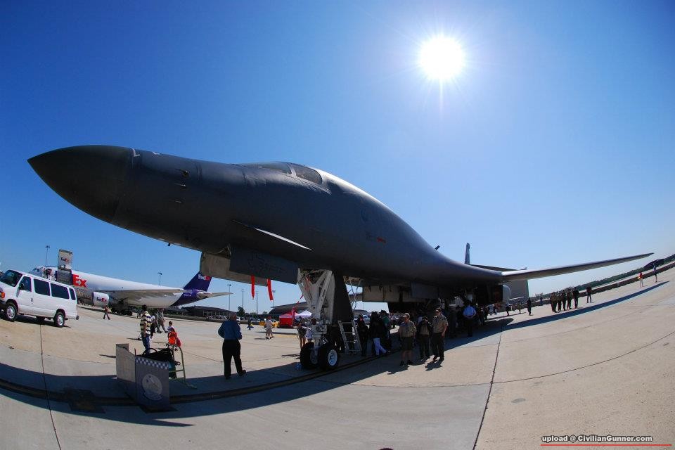 Rockwell B-1 Lancer. Supersonic Strategic bomber. 之後,重有佢飛行中嘅相,飛到好近好近,俾我咃睇清楚對翼 fully extended 同 fully retracted 嘅型樣。