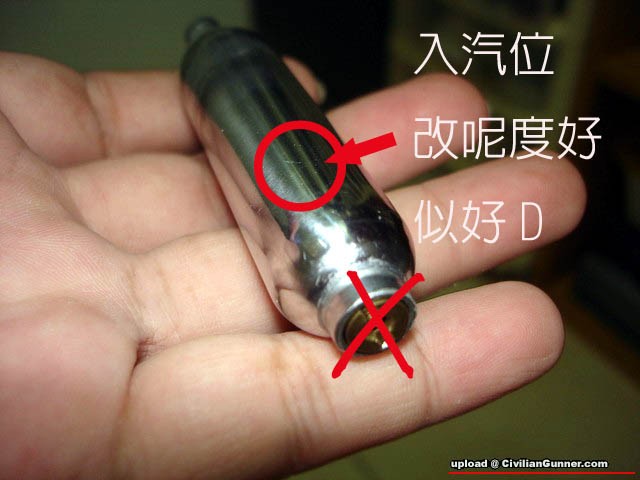 注意原裝擊錘彈弓打red gas同top gas 可能大强,以致一吓噴晒D氣出來,要調弱一些............