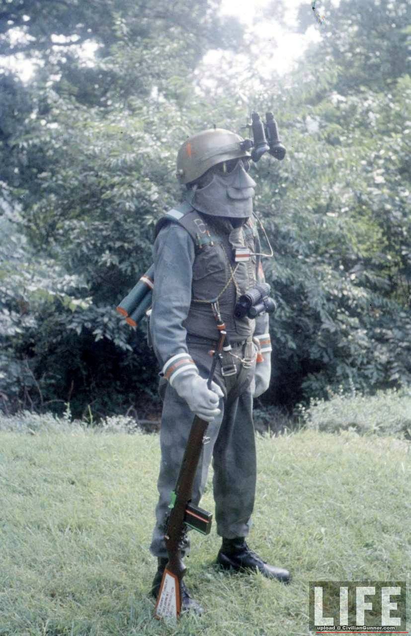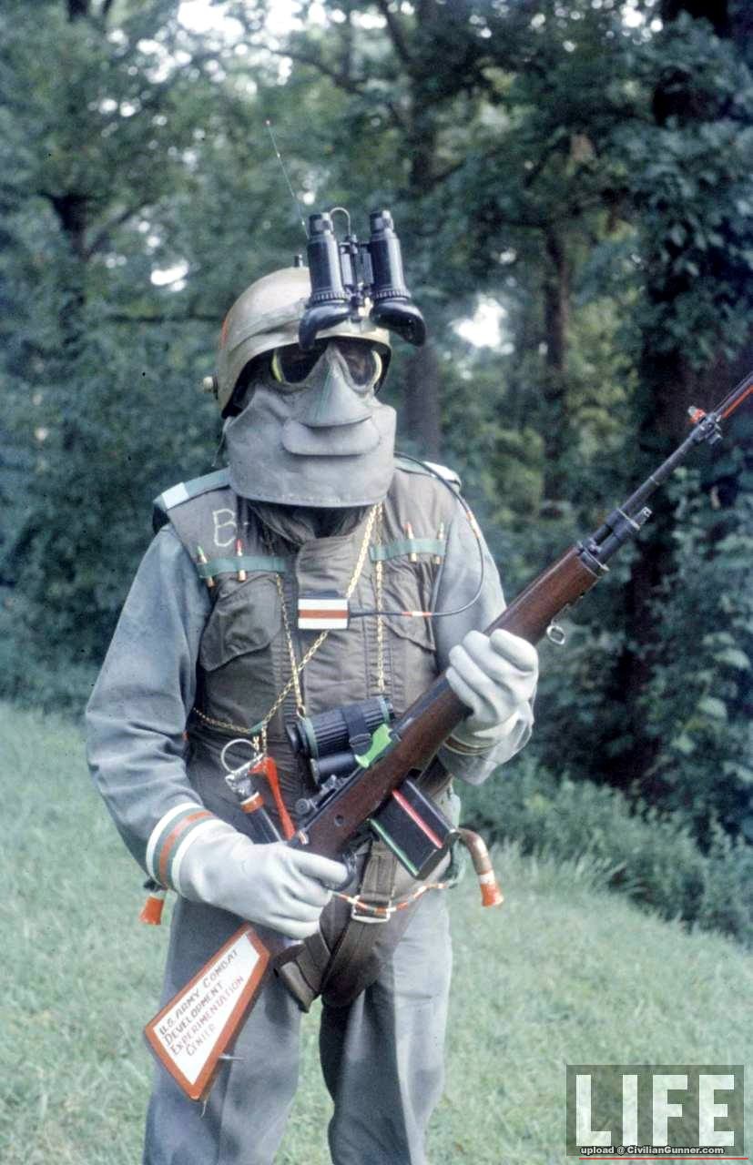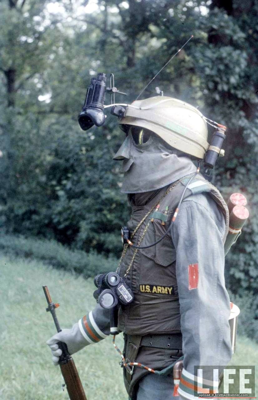 夜視鏡, 防化衣, 個人無線電, 破片衣