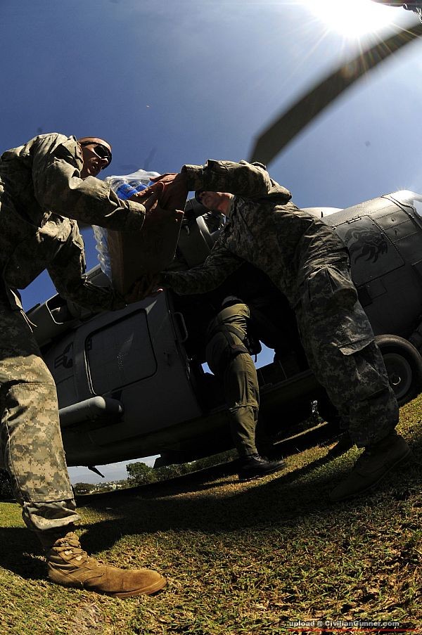 班軍人去救人運糧食物資, 唔拎番把槍防下身好易比人老笠...