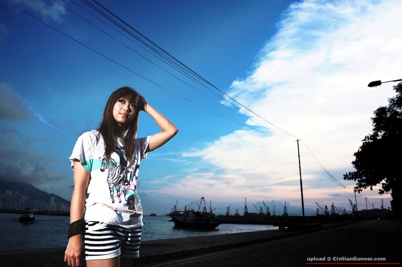 Let me explain a little bit more, the yellow light you see on the wall is a spot light which installed on the ground in front of the wall, then I use flash to make the shadow on the wall and video light spot on their face (you may try surefire instead of video light), I should use another video light to eliminate the shadow on the male face, however....I left it at home...