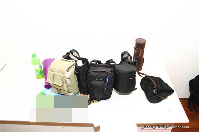 放下CF card, 後備電池, surefire電, 紙/毛巾,手電, portable HDD.....lor