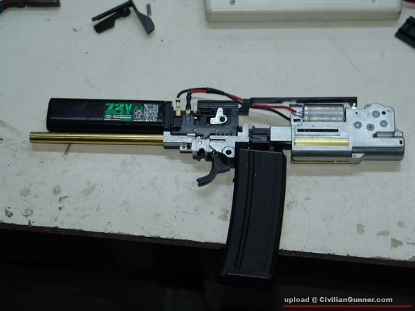 做主力打就差D那, 想改...平平地去"童工"買條VSR sp110彈弓自己cut改落去,買個marui的mp7外接電源轉插+車仔鋪買細電插加工,打外接8.4v電,可17發/秒,打下接近戰OK