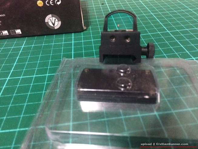 一直很想在我的Glock上安裝docter sight, 但由於玩具sight不防震, 所以未有實行. 近日知道"射手"返左我之前用開果隻Vector Optics嘅docter sight, 當然立即入手. 呢隻仿docter同以往呢個牌子嘅紅點鏡一樣, 玩具價錢(4xx)買真品, 防震程度一流, 原裝跟左一個真品Glock mount(個mount老闆送比我做白老鼠...), 可上KXC或VXC嘅Glock, 上落KXC Glock 18c道連射打左過十匣都無熄無走位~正. 但由於真品sight mount數同KXC sight數有少許不同, 要小加工才可. 另外因為我又有馬記Glock, 問過"射手"老闆, 介紹左5XU果隻Glock mount比我, 上馬記免修直上~