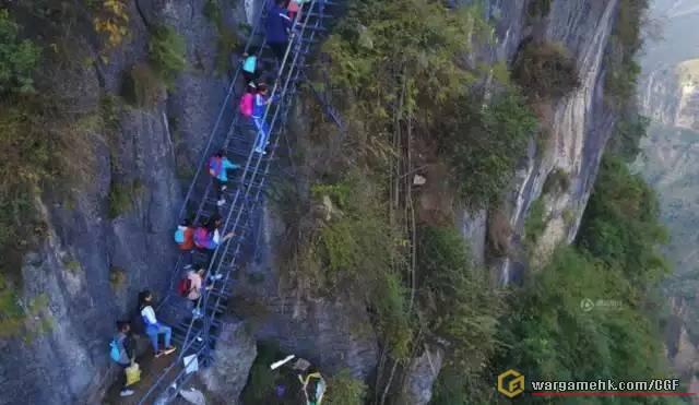 四川大涼山村童,每日爬雲梯返學