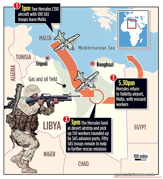 早在上星期二,已有一班UKSF座民航機到咗利比亞,