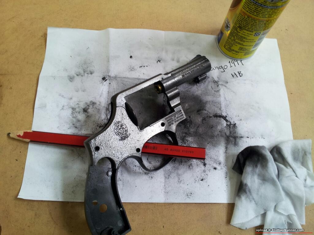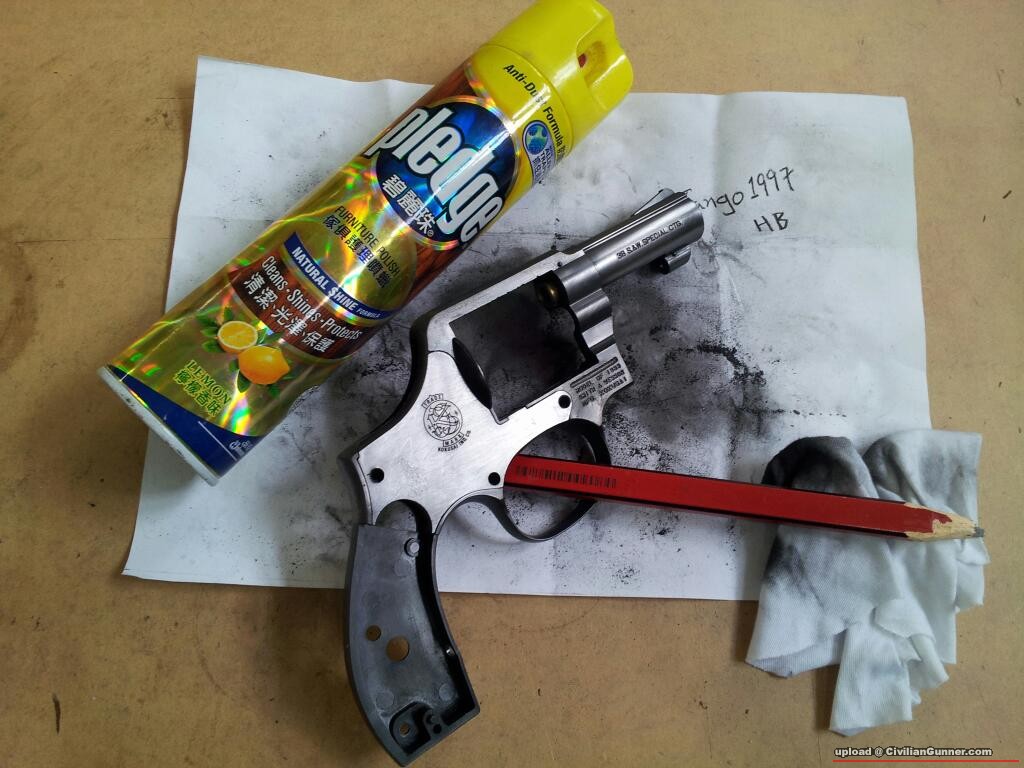 先將礕麗珠噴耍於槍身。 。。。約數分鐘後。。。用軟布輕卒