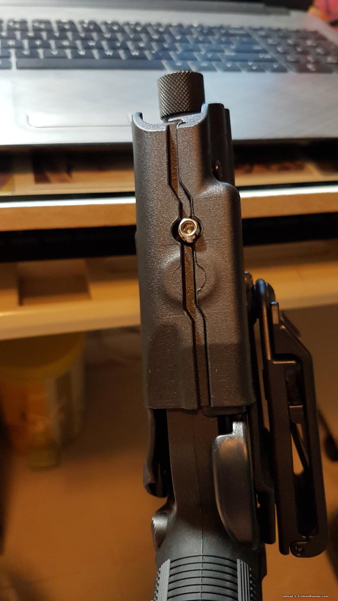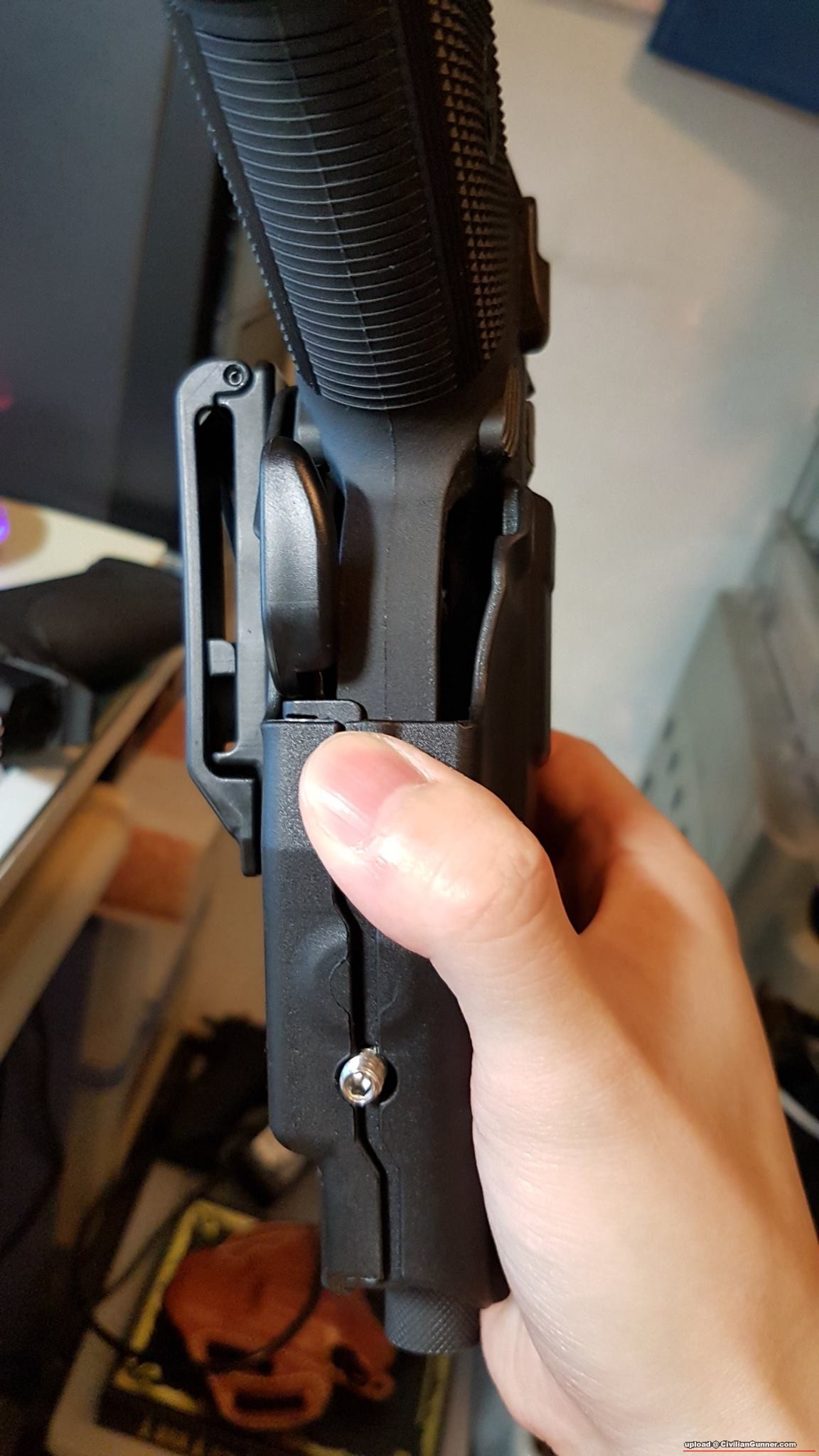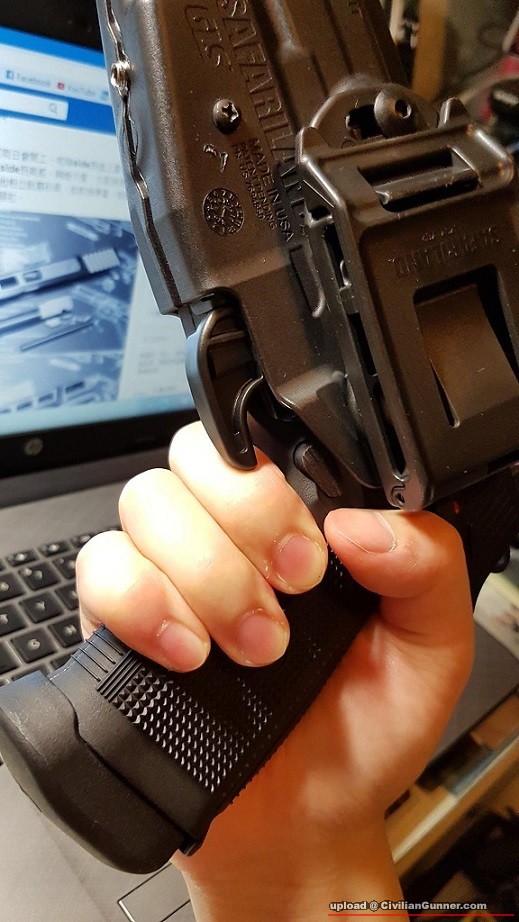 同樣地留意一下grip實枝鎗後, 中指同解鎖制既位置