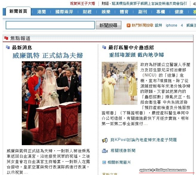 原帖由 sunny2014 於 29-4-2011 19:09 發表 即係呢… 入到yahoo新聞 上面條bar度最前面都有句紅字「祝賀英王子大婚」 我唔明呢樣野同香港有幾大關係囉…