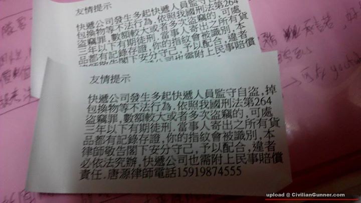神貼上包裹用泥恐嚇快遞: