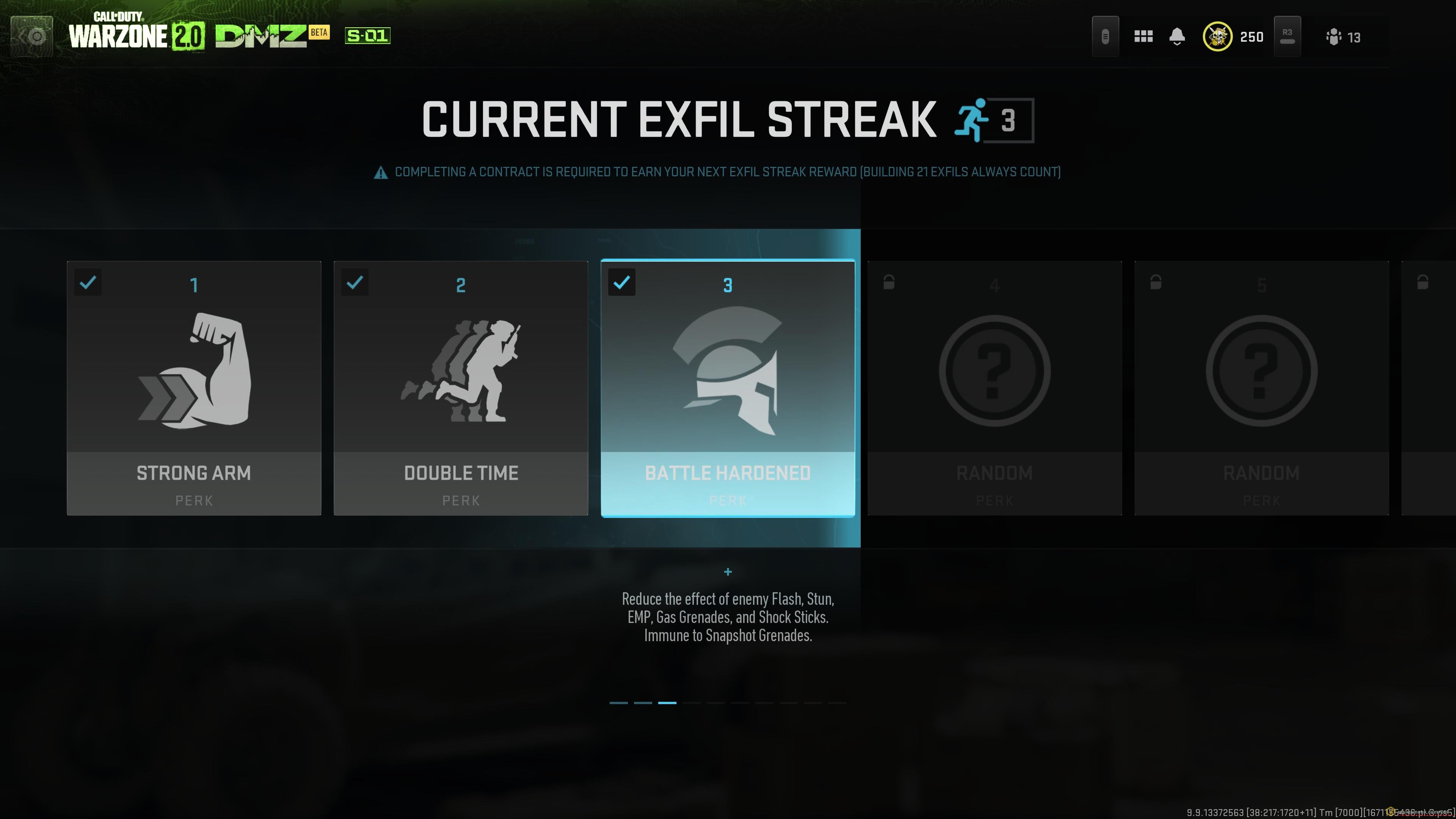 做一個任務後撤離可以隨機取得一個perk