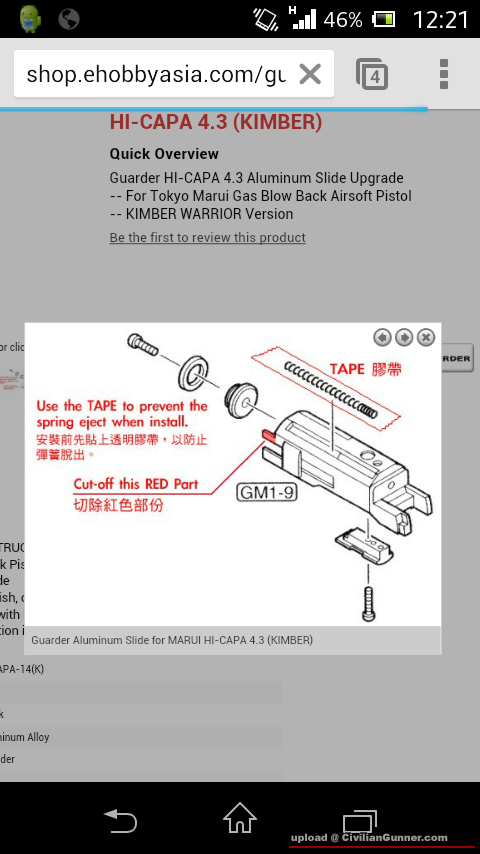 直至一個月前行槍街發現Nova出了Kimber Raptor II For Marui 1911的改件,小弟當時二話不說立即比錢