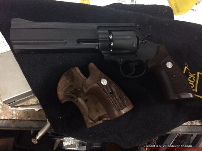 Marushin出品的Constrictor系列已生產了很多年,但由於比較少人玩的關係,相對出產的升級配件更少,像今次這對木柄,由於氣缸及鏍絲孔位,這槍要上真品要非常大修才有機會用上,日本製的我找了很久很久才找到,雖然顏色及木紋也不是十分好,但也即時入手.......