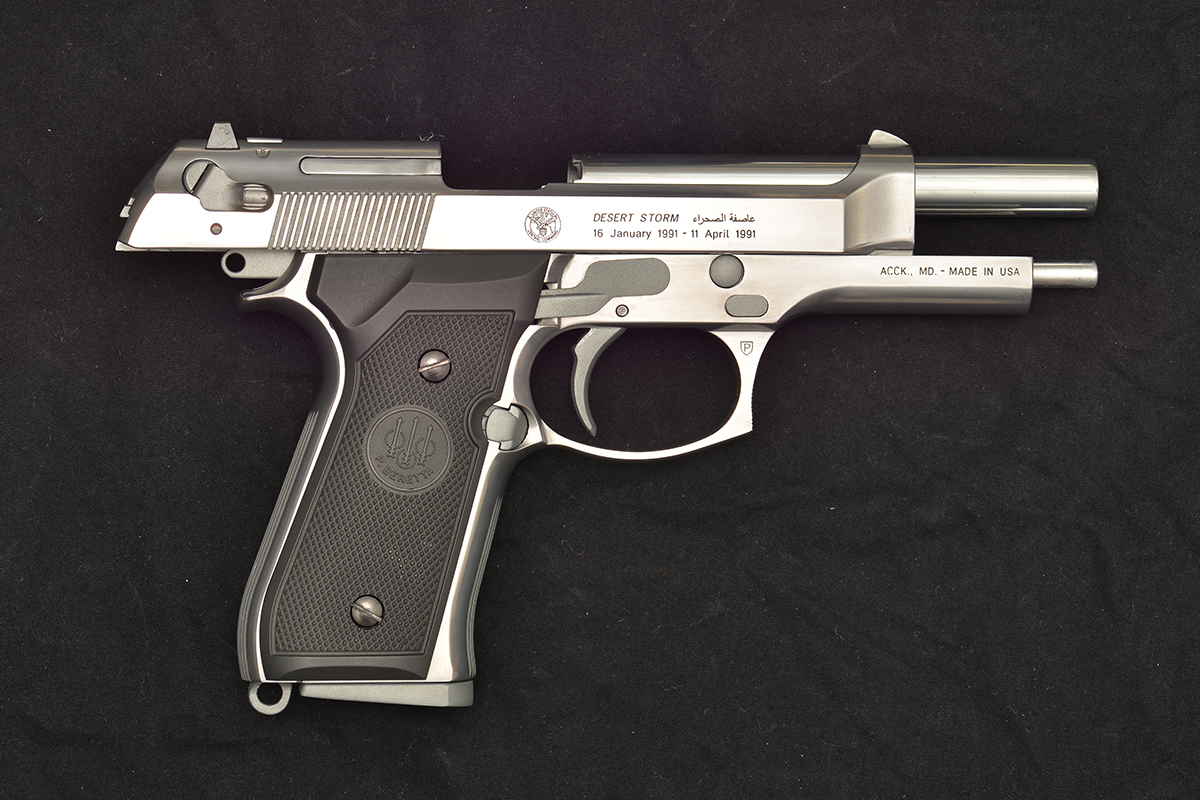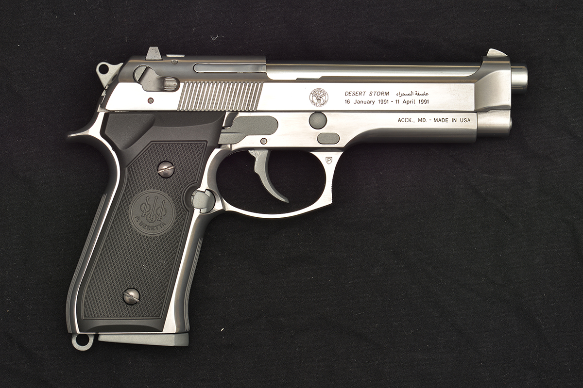 » 客製GBB BERETTA 92FS DESERT STORM沙漠風暴紀念槍,亮銀版