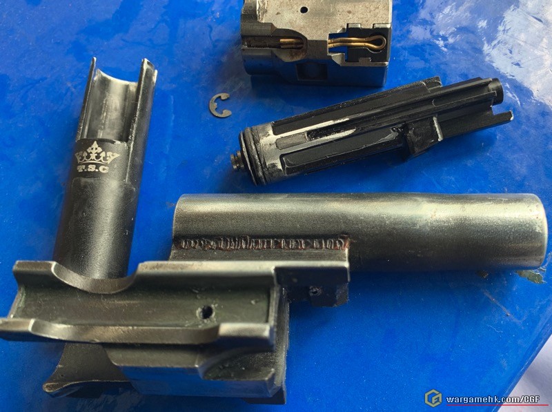 個人覺得一般的金属飛機很難駕馭,這次同様老問题,jam彈,爆珠,崩珠同樣在未修改前出現.應是個人問題,花了錢當然想能用上.修整如下,打滑推彈槓角,修短彈咀1mm及改變彈咀內斜角度,並順便改一改自已慣用的飛機回bolt行程,終順順了!