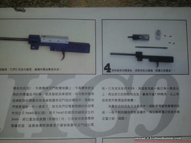 請玩開Maruzen KG9師兄請指教,小弟早排收咗支KG9返嚟(匣入氣版本,不是拖喉),不過發現打起嚟無力推彈打出去,起初用134A氣,之後用Topgas,效果一樣。後來我發現飛機是無彈弓拉住的,即當個Bolt拉後Ready狀態時,槍咀一旦向下,飛機就會向前滑動,當槍咀向上就會跣返入去Bolt入面,請問這是否正常嗎?之後我忍唔住就拆開硏究,見飛機本身應該真係無彈弓拉住,只依靠兩邊軌道卡住。希望有經驗的師兄賜教...謝謝!
