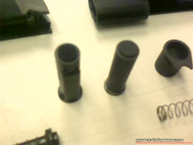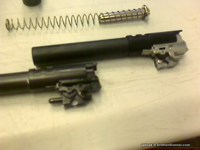 內部PARTS:....其實兩野都係用返D自家舊1911系的PARTS...WE D RECOIL SPRING又斜又成...個彈弓頂針仲要係銀色.........