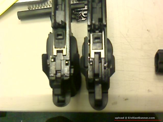 滑架對照,HOP UP位,回膛彈弓頂針不同...WE的長期係斜的...