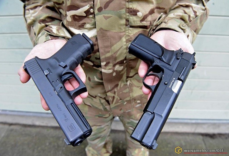 英國軍方兩代制式手槍——2013年開始換裝 Glock 17 作為制式 sidearm。