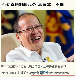 原帖由 tango10 於 16-5-2013 09:48 發表 我地一心只顧河蟹, 竟然沒有對馬尼拉人質事件採取任何制裁措施, 繼續讓芒果個人民帶來豐厚的收入! 現在還要出動軍隊保護, 壓制國軍行動! 河蟹, 河蟹, 河蟹!