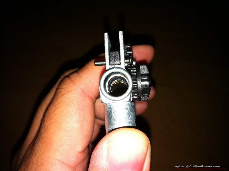 3. 由於粟米筒太FIT的關係, 如果玩家要由粟米筒換成RIS/RAS, 要先將3角準星先拆開才可換護木等, 建議此部份作出小量修改即可