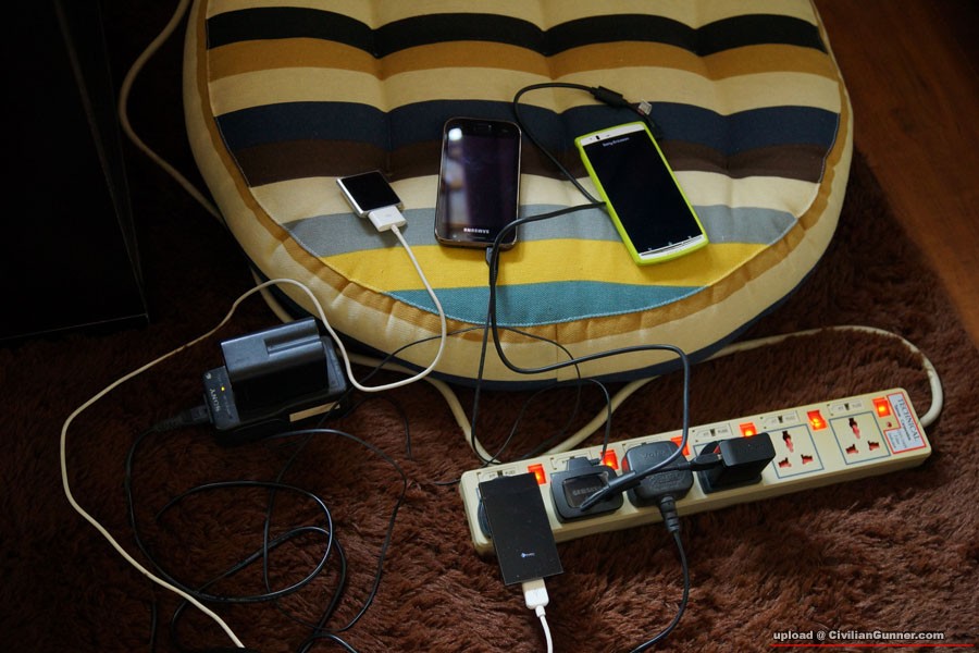 我而家只係帶一隻samsung 骰仔叉機,一條黃金八瓜魚充電線,一條USB extension cable,就可以充晒我兩部電話 (mini-USB, micro-USB)同埋NDSL,叉多部iphone就唔得了,要跟機