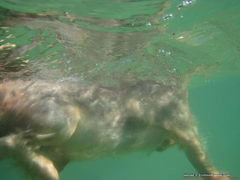 小狗狗游泳也可游很遠,但狗狗在海裡打起的浪花是會招喚鯊魚的.印尼就用狗狗造鯊魚餌